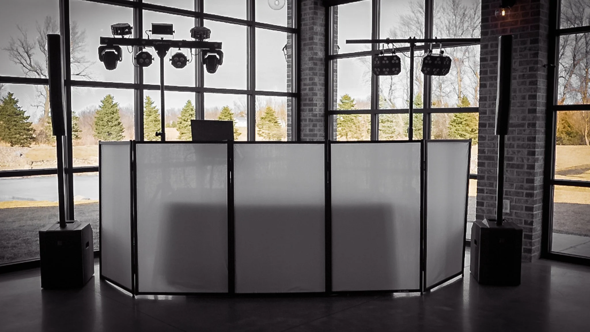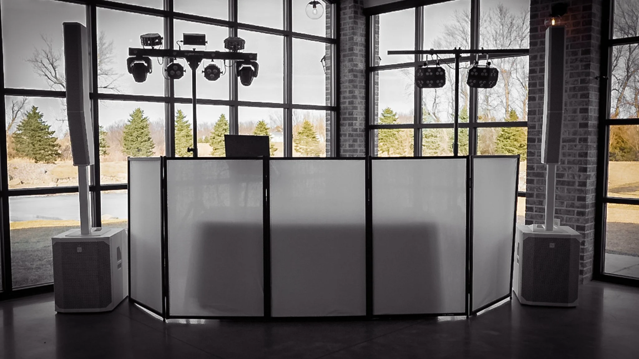 Deluxe – $750: 6 pillar up lights, deluxe dance floor lights, interactive DJ, and full sound system for up to 3 hours.